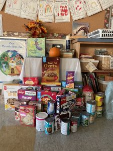 We have collected cereal and canned goods so far. This week we are hoping to collect packaged foods like Kraft Dinner or spaghetti etc… Cereals and canned foods are still welcomed as well.